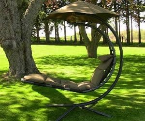 This chair is like a dream come true! Hang around in ultimate comfort and style with the dream chair. Feel like your relaxing on a cloud with plenty of foam fill. Includes a built in canopy and is easy to assemble.