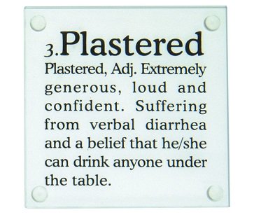 You'll be working your way through the different states on these drunk words coasters when you next have friends over for drinks! Fun and functional to use and make a great conversation starter. Set includes 6 glass coasters that feature rubber feet to protect your table surface.