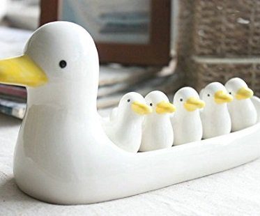 Chinese night wouldn't be complete without this duck chopstick rest set! You'll get five cute little ducklings that will hold your chopsticks when they're not in use, keeping the tips off the table and prevent them from rolling anywhere. The ducklings store neatly inside the mother duck when you've finished using them.