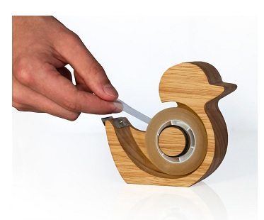 Throw out your plain, boring tape dispenser and replace it with this awesome duck tape dispenser! It's made of sustainable rubber wood and includes 1 roll of sticky tape. Looks great on your desk!