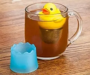 If you enjoy a delicious cup of tea then you'll love this duck tea infuser! Simply place your favorite loose leaf tea inside the duck and sit back while he brews it for you. Once the leaves are saturated the duck will float upright. Includes a stand for when it's not in use.