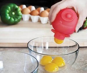 This little dude will make separating eggs quick and easy without any mess! The easy egg separator is a simple silicone suction device that will remove your yolk from your white with a simple pinch! Crack the egg into a bowl, squeeze the separator over the yolk and release to activate the suction. The yolk is quickly removed leaving the whites in the bowl!