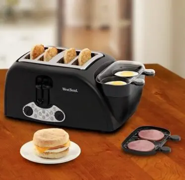 Making breakfast in the morning shouldn't be hard work especially when your still half asleep! So with one of these egg and muffin toasters you'll be munching away in no time! This toaster features 4 slots for things like muffins, bagels and toast. Egg cooker that can steam poach or scramble eggs and also heat up pre cooked meats. YUM!