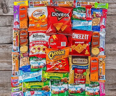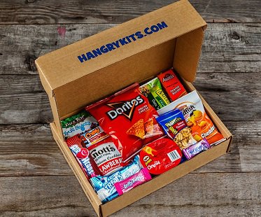 Cure your snack deprivation with this jam-packed emergency hunger kit! It comes with a HUGE variety of tasty treats including things like peanuts, crackers, chips, candy and more! YUM!