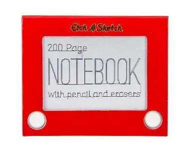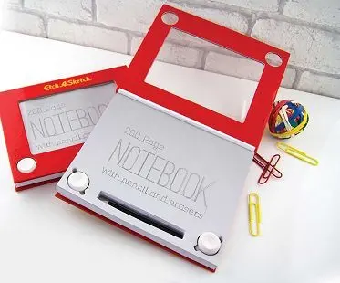 Remember those amazing drawing toys we all had and loved using as a kid? Well now you can re-live the memories as you draw for real on this Etch A Sketch notebook! It comes complete with a pencil and erasers and it's been designed so that when the pad is closed your drawing can be seen through the window appearing like the toy itself. Awesome!