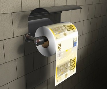 Ever wondered what it would feel like to be so stinking rich you could afford to wipe your butt with money? Well now you can pretend with this awesome euro toilet paper! Each piece features a realistic print of a 200 euro note.