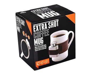If you feel like you need an extra kick in the mornings then this extra shot coffee mug is just what you need! If features a ceramic mug with a miniature hip flask and leatherette flask holder. Irish coffee anyone?