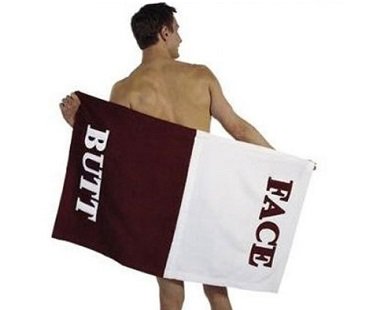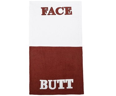 Keep your hygiene standards organized with this face and butt towel! A hilarious gift for anyone with a sense of humor! Take it to the beach to turn some heads and make people laugh as they pass by. Made from 100% cotton.