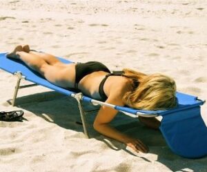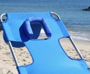 Relax outdoors in ultimate comfort with this face down sun lounger! It features a face hole and arm slots so you can lay flat on your stomach while reading a book or operating your devices. Lightweight and portable.