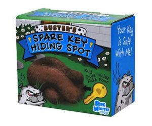 For the ultimate spot where no one will ever look, keep your spare key inside this fake dog poop key hider! It features a secret compartment underneath where you can stash your key and it looks so real that you can hide it in plain sight in your backyard.