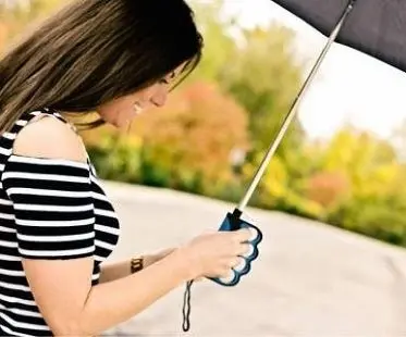 This finger grip umbrella does more than keep you dry in the rain! More importantly, it frees up your fingers so you can operate your mobile phone! You can text and email all while maintaining a firm hold. The compact design means it's perfect to carry on-the-go and fits easily in your briefcase or purse.