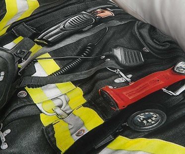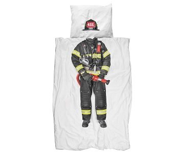 You'll have no trouble getting your little one into bed with this firefighter bedding set! It features a realistic print of a firefighter suit on the duvet and a helmet on the pillowcase, so when your child climbs inside they'll look like they're wearing it! Made from 100% soft cotton.