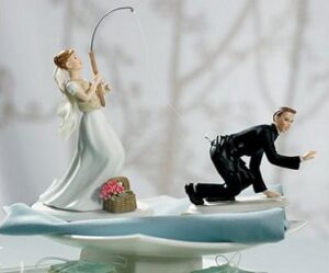 Add some humor to your wedding with this hilarious fishing bride and groom cake topper! This hand-painted figurine is perfect for those who want something different to a traditional topper. Great for couples who enjoy fishing, or perhaps a bride who thinks she got the catch of the day!