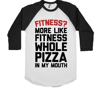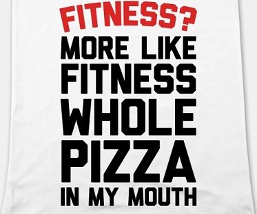 Who wants to go to the gym when you can stay at home, eat pizza and be happy?! This 'fitness whole pizza' t-shirt displays words that most people will be agreeing to as they read it! A great gift for pizza lovin' gym haters!