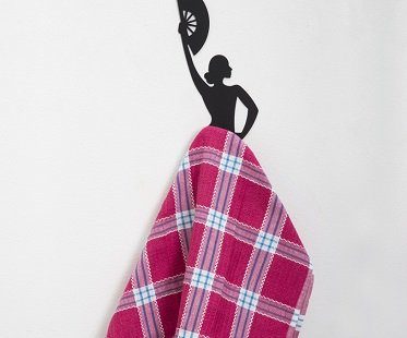 This flamenco dancer towel holder will get a new dress every time you change to a new cloth! It can be screwed or stuck to the wall and makes the perfect place to hang your tea towels. A fun, functional and fashionable piece for every kitchen.