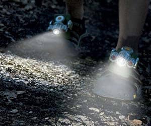 Walking alone through the darkness can be scary at the best of times, So grab yourself a pair of these awesome flashlight shoes! Featuring an ultra bright white led light and 2 smaller red led lights for secret night mode!
