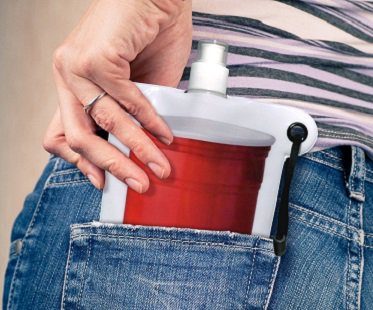 Always be prepared for parties with this flat pocket flask! It's functional design means you can put in inside your pocket or purse with ease and take it with you wherever you go. It features an image of a classic red party cup and can be reused again and again.