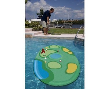 Challenge your skills outdoors with this floating putting green! It's great for practicing or simply for fun with the family. Includes floating target, golf balls, chipping pad and moveable flag.