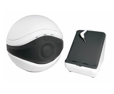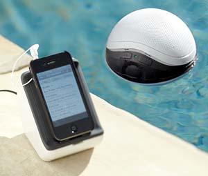 Listen to your music while lounging by the pool with this floating wireless speaker. Using a high powered 900 MHz signal, the floating wireless speaker can deliver high quality sound from a long distance, and can be synced up with other floating wireless speakers.