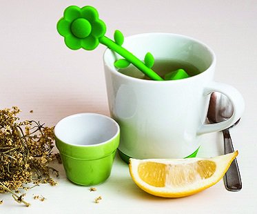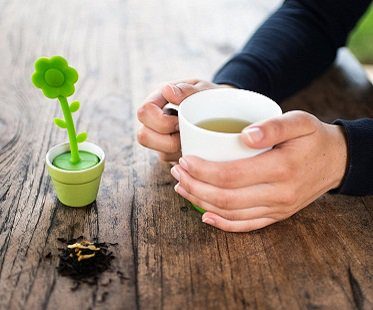 Enjoy your favorite infusions with this flower tea infuser and mug set! Let your loose tea leaves blossom in your mug for the desired steeping time ready for you to relax with and enjoy. This four piece set includes: silicone infuser, ceramic pot holder, ceramic tea mug and built-in removable coaster.