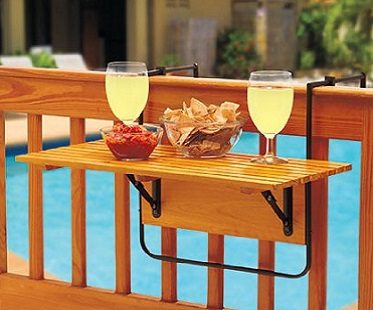 Enjoy snacks and cocktails during the summer out on your balcony with this awesome folding deck table! It's the perfect space saving design for smaller balconies and you can keep it folded flat and out of the way when it's not in use. It secures to your railing with metal clamps and brackets.