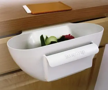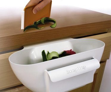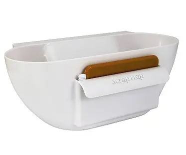 Tidy away scraps quickly and easily with this handy food waste bowl! It can be hooked over your cupboard drawers or doors and includes a scraper so you don't even have to get your hands dirty. A must-have for every kitchen.