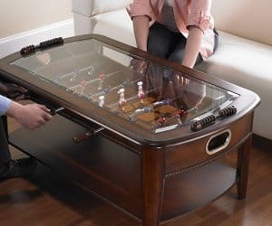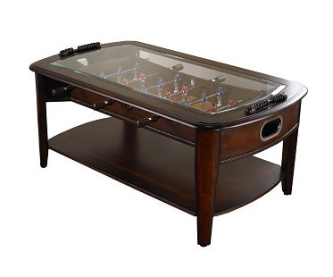 Impress your guests with a stunning center piece that everyone will want to play! This fully playable foosball coffee table is great for your games room or living room and has been crafted to a very high standard in rich, solid hardwoods. Features a shelf underneath for storing magazines or books.