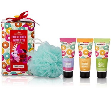 You'll be smelling extra 'frooty' when you use these products in this Froot Loops pamper tin! Includes a lime bubble bath, peach shower gel and a strawberry body lotion as well as a shower puff to scrub yourself with. A great gift for fans of the tasty cereal.