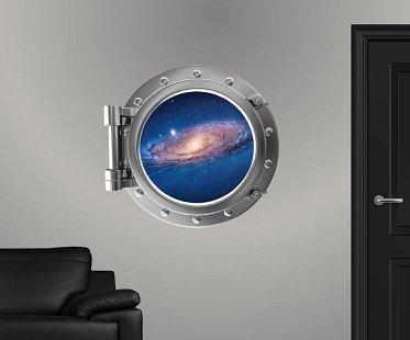 Add a unique view to any room in your home with this galaxy porthole wall sticker! Space isn't as far as you think when you have one of these awesome decals! Just peel and stick for an instant new look to your office or kid's bedroom.