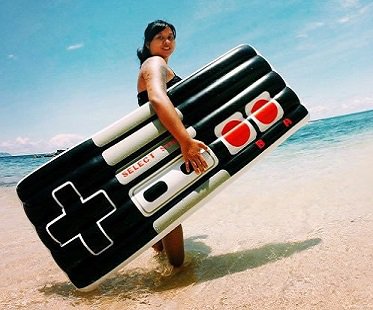 Take a break from your console and enjoy the sunshine relaxing on this game controller pool float! It's perfect for your home pool, at the beach even at a swimming lake. Its retro design is based on the classic 80's NES controller and makes a great gift for gamers.