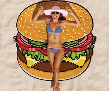 Stand out from the crowd with this giant burger beach blanket! This colorful vacation must-have is great for relaxing on and there's plenty of room for more than one person. It also makes a great towel too!