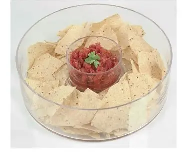 This glass chip and dip bowl is great for serving tasty snacks when your entertaining guests! It's simple yet stylish design will look great at the table and have your guests reaching for chips all night long!