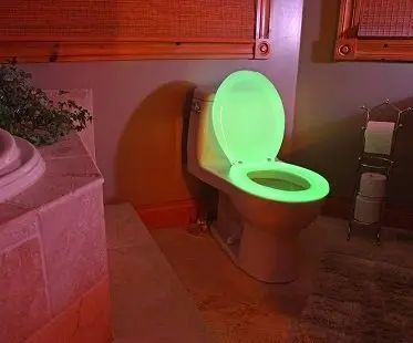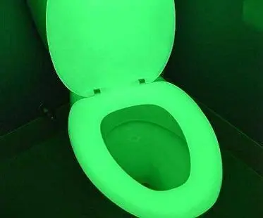 Avoid turning on blinding lights at stupid o'clock with this glow in the dark toilet seat! It will greatly assist you in stumbling to the toilet when you wake up in the night and simply must go. Lasts up to 8 hours when fully charged. Made from photo luminescent plastic.