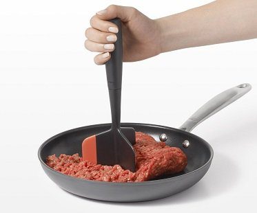 Ensure even cooking and no giant meat chunks with this ground meat chopper! It features 3 wide blades for breaking down the pieces and they're great for stirring and scraping food from all areas of your pan. Makes light work of a chore!