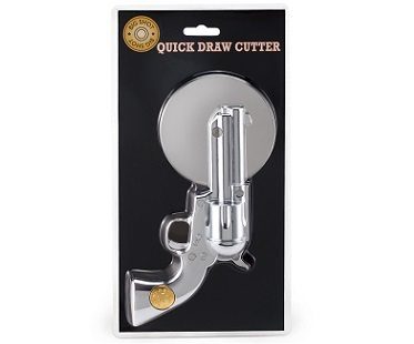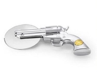 Make takeout night more fun with this gun pizza cutter! The sharp, stainless steel blade will glide through slicing your pizza so you can quickly get to eating it! A must-have gadget for pizza lovers!