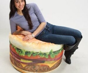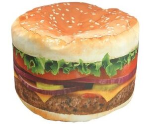 Hard day? Well then take a seat on this tasty hamburger bean bag chair! It looks good enough to eat! Made from 100% polyester and has digitally printed fabric making the burger look real.