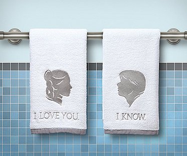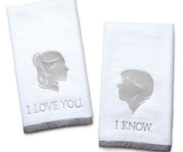 Declare your geeky love for one another in a fun yet practical way with these Han and Leia towels! There'll be no more guessing whose is whose as the words and pictures say it all! The perfect gift or a must-have for any couples who are Star Wars fans.