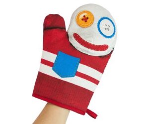 Have some fun and get silly with your children during cooking with this hand puppet oven glove! It will protect your hands from hot trays and keep your little ones entertained in between.