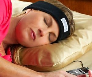 Drift off to soothing music as you relax in bed with these headband earphones! Works with any kind of audio source such as iPods and mp3 players. A soft and comfortable fleece headband that helps block out noise and snoring.