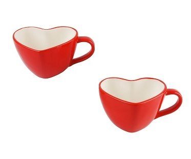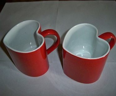 These heart shaped mugs are perfect for any loving couple, Now any cuppa can be a romantic time! Â They are easy to clean and dishwasher proof.