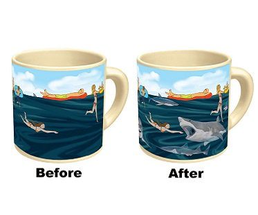 What looks like a fun day at the beach soon turns into a scene from Jaws on this heat changing shark mug! Add your favorite hot drink and watch the magic happen right before your eyes as a shark gradually appears in the water. A fun mug to add to your collection.