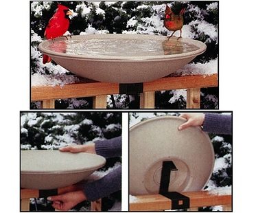 Let your little visitors bathe in luxury with this heated bird bath! A simple mount attaches the bath to deck rails and has been designed so that you can tilt it for easy cleaning. A great way to attract wildlife to your garden.