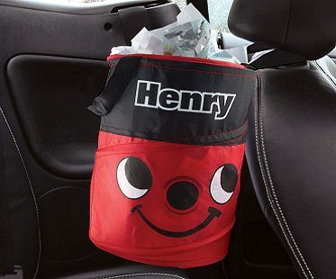 Everyone's favorite hoover is now available to store your trash in this Henry car bin! Attach it the the back of your seat using the Velcro straps and toss your trash inside it instead of all over the car floor! Folds down flat for storage.