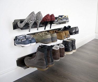 Turn any wall into a floating storage shelf with this horizontal shoe rack! Holds 3-4 pairs of shoes on one rack. Sleek and stylish design for the modern day home.