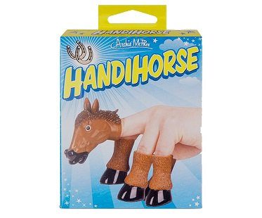 Horsing around has never been more entertaining! Fill your break times with silly fun and get these horse finger puppets! Made from soft flexible vinyl and fits children and adult fingers.