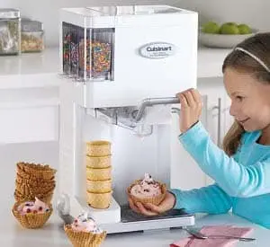 Now you can make your very own professional looking ice cream desserts! Includes with 3 built-in condiment dispensers; cone holder; removable parts for easy cleaning; instructions and recipes included.