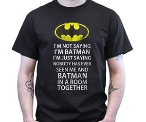 You’ll love wearing this ‘I’m not saying I’m Batman’ t-shirt! Walk around mysteriously and watch the confused look on people’s faces! Available in black or white. A great gift for Batman fans!