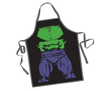Add some musclebound power to your cooking skills with this awesome Incredible Hulk apron! Perfect to use outdoors on the grill. A great gift for the man in your life!