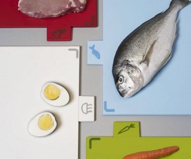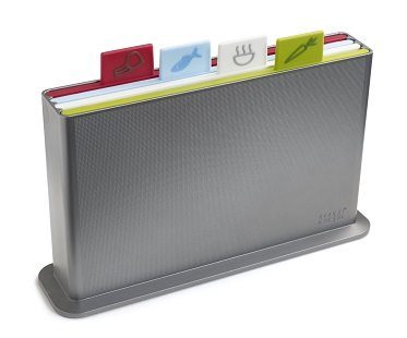 Keep super organized and avoid cross-contamination with the index chopping board set! It includes four color-coded chopping boards so there's one each for meat, fish, vegetables and cooked foods. Identify each board easily with the index-style tabs at the top.