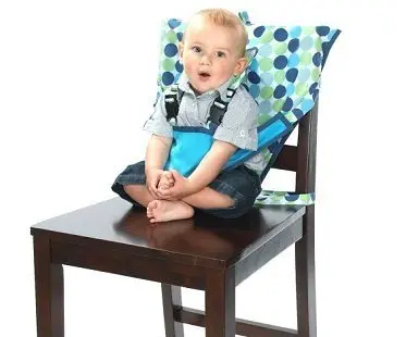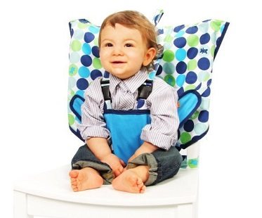 Now your little one can sit at the table with everyone else wherever you are with this infant travel high chair! It's the perfect solution for when you're out to lunch, at a friends house or on vacation.It hooks over most chairs and takes only seconds to set up. When it's not in use, you can fold it down to the size of a diaper and place it inside its matching bag. For babies 6 months old and above.